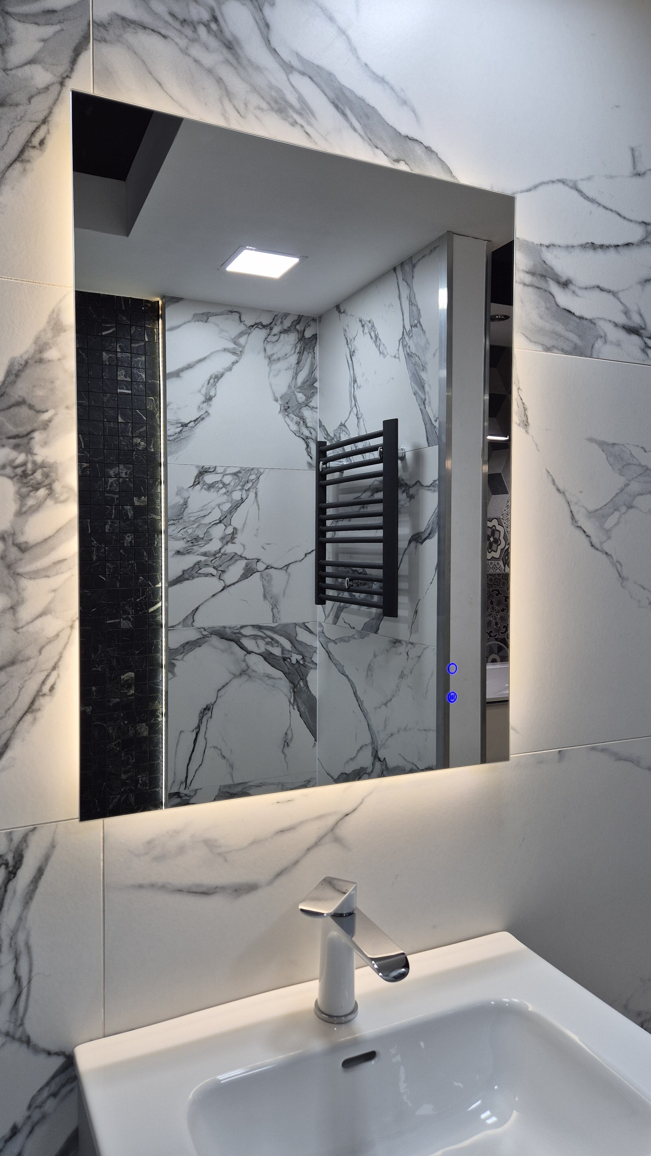 🌡️ Wbudowana mata grzewcza skutecznie eliminuje problem zaparowanego lustra. Już kilka minut po włączeniu lustra możesz cieszyć się idealnie czystą taflą – nawet po gorącym prysznicu!